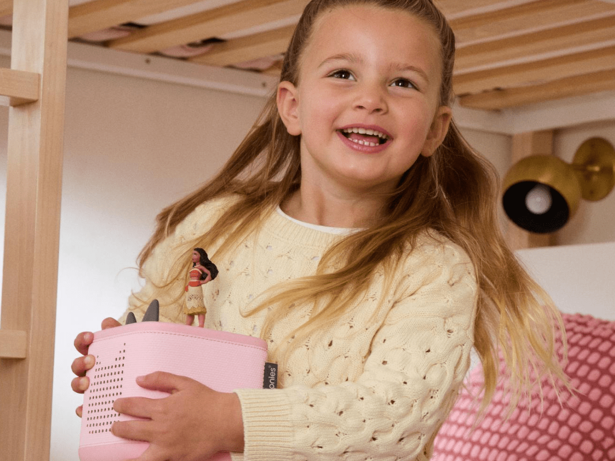 But that’s not all ?C? the new Sunrise Alarm and Sleep Timer with Light help families build healthy sleep habits and make bedtime better. all easily controlled through the tonies? app. And with no screens or ads. parents can rest easy knowing their kids can play safely and independently?? in a whole new way.
