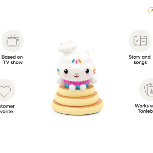 Hi hi! It’s Cakey Cat! Ready to sprinkle some fun into your day! Join Cakey Cat. Gabby. and all of the dollhouse friends for two extra sweet adventures in this Gabby’s Dollhouse: Cakey Cat tonie. In Cupcake Tree. Cakey helps bring a magical cupcake tree to life. full of tasty surprises and teamwork. Then in Dollhouse Detectives. a curious mystery pops up and Gabby and Pandy are on the case! With frosting-filled fun and a sprinkle of music. Cakey Cat is the perfect new tonie for little listeners!?